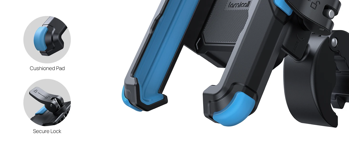 Lamicall Motorcycle Phone Mount Holder - [Camera Friendly] [1s Lock] 2023 Bike Phone Holder Handlebar Clamp, Bicycle Scooter Phone Clip, for iPhone 14 Pro Max, 13 12 Mini, 2.4~3.54" Wide Phones