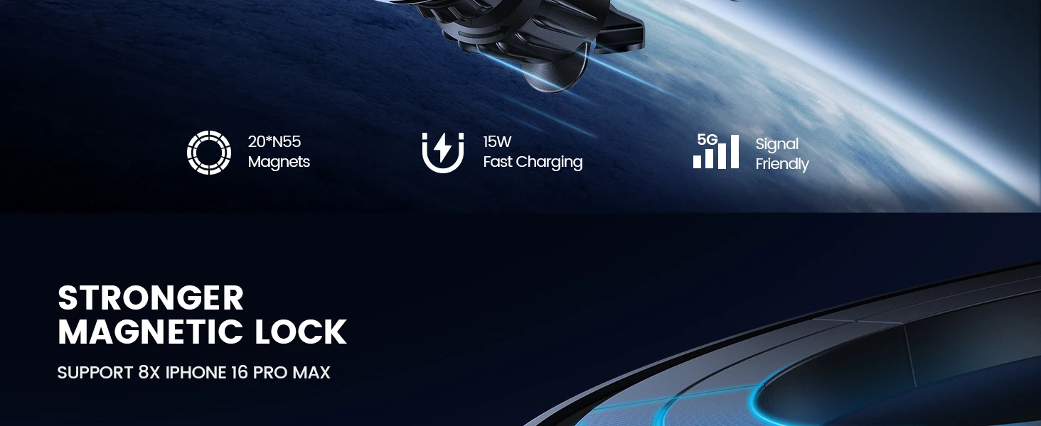 Lamicall Ultra pour chargeur de voiture magnétique 15 W, support de téléphone sans fil pour voiture, supports de téléphone magnétiques mains libres